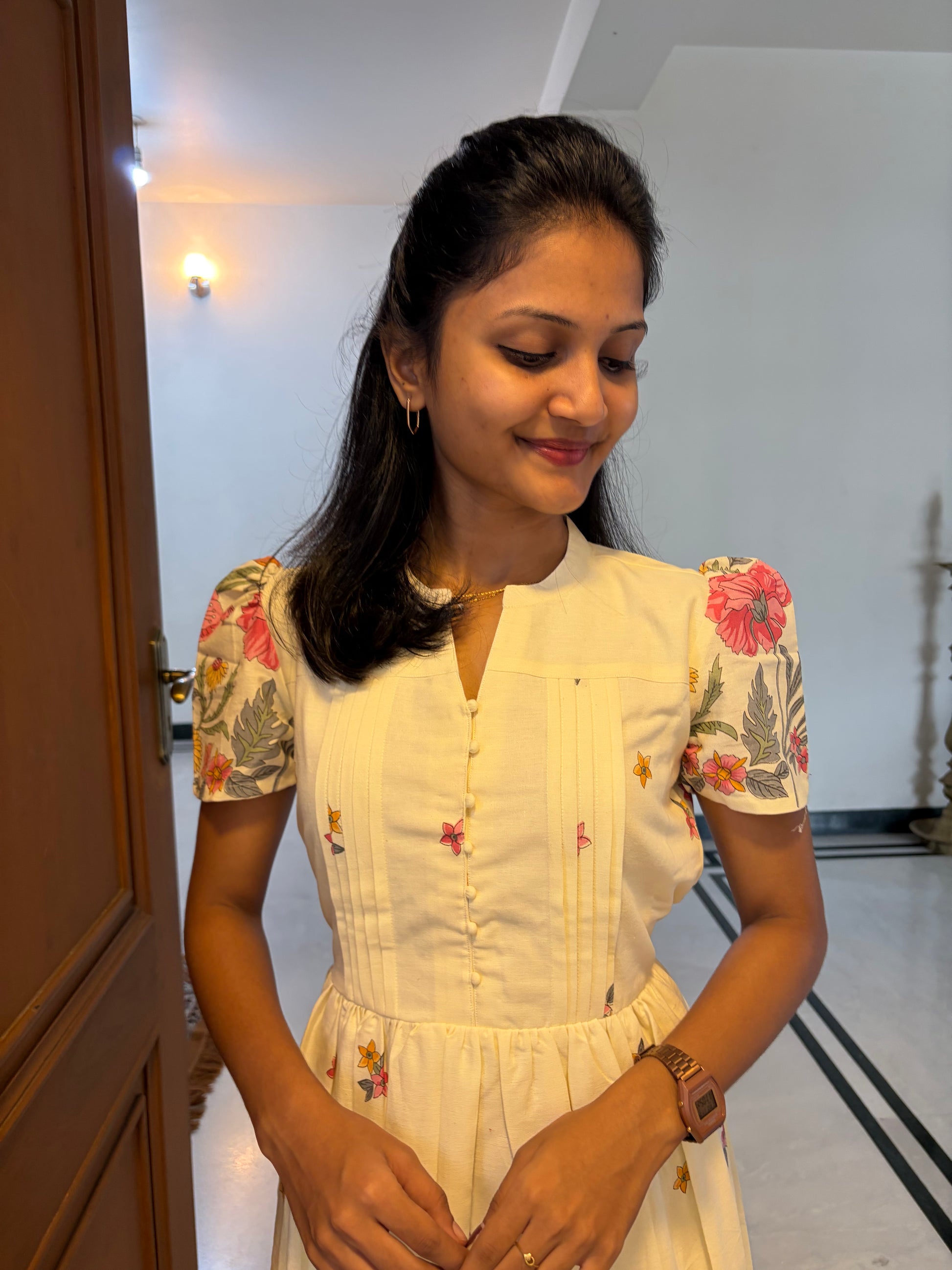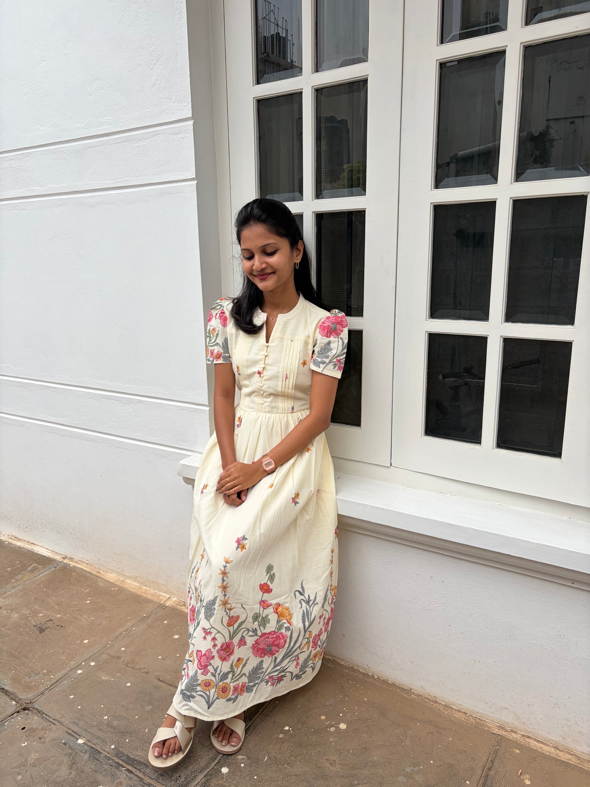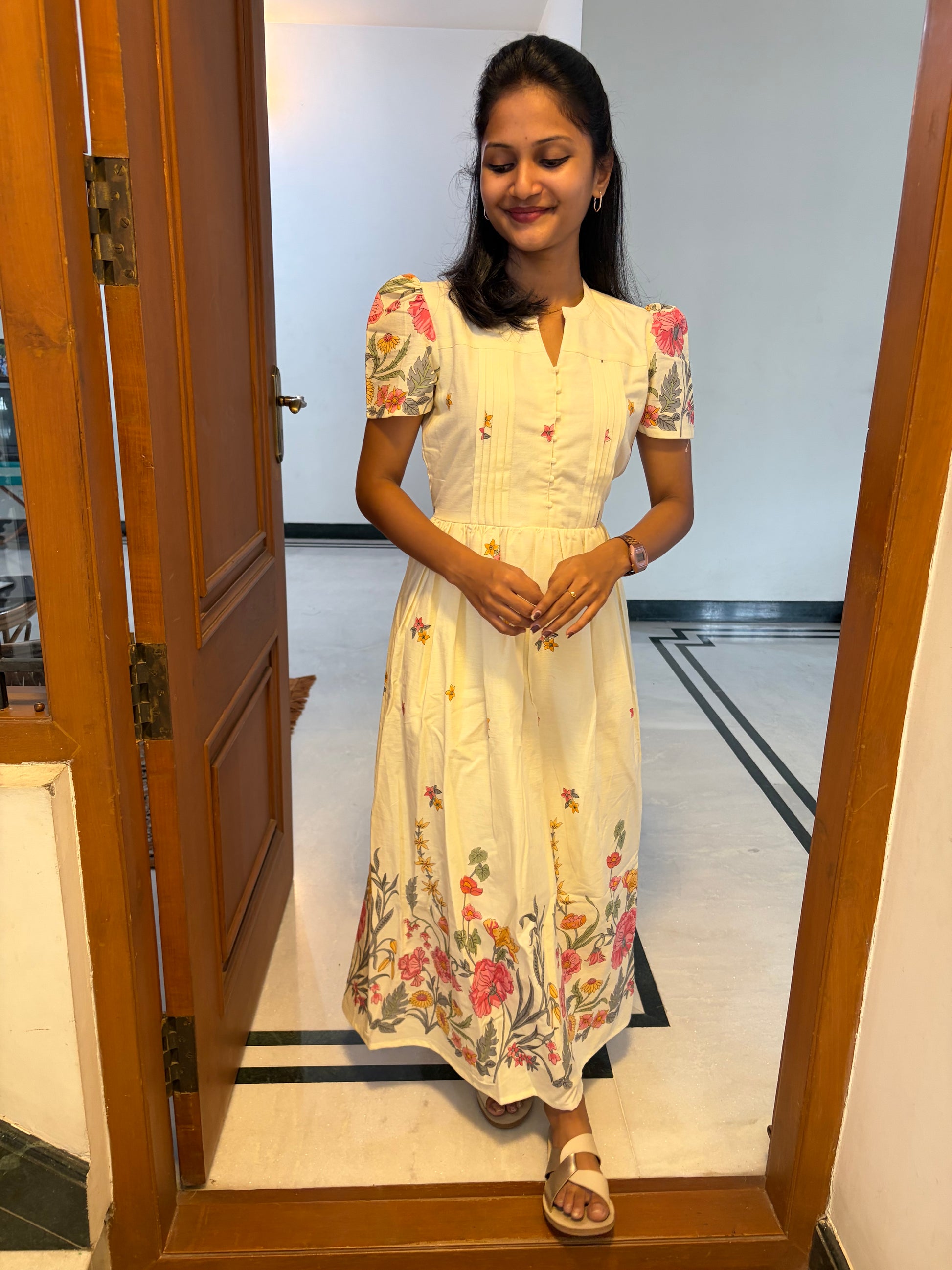 Crafted in flex cotton,this dreamy-white and floral maxi features delicate pleats along the yoke for a flattering fall.With a comfortable 48” length and convenient pockets,it’s perfect for effortless everyday elegance.