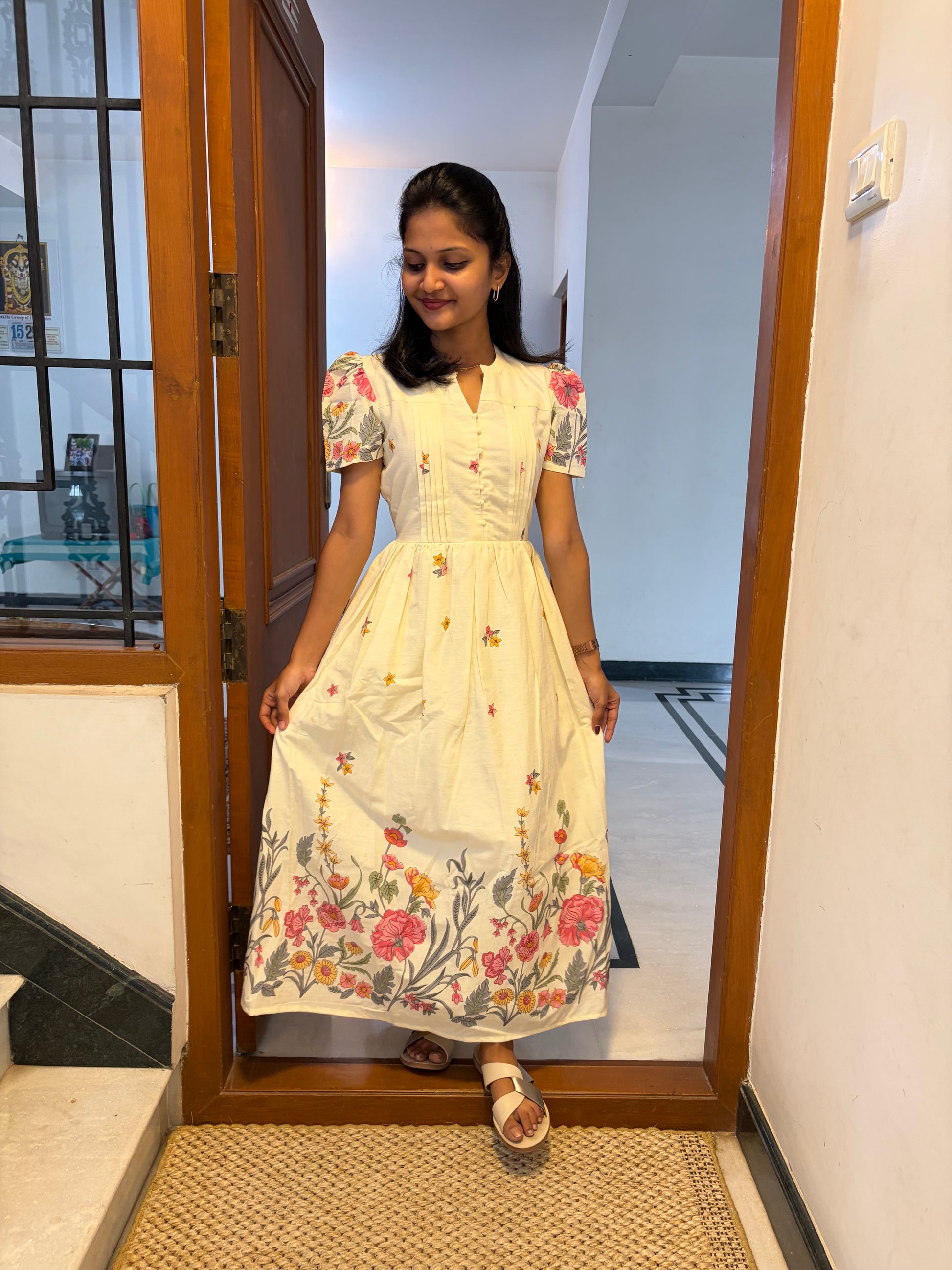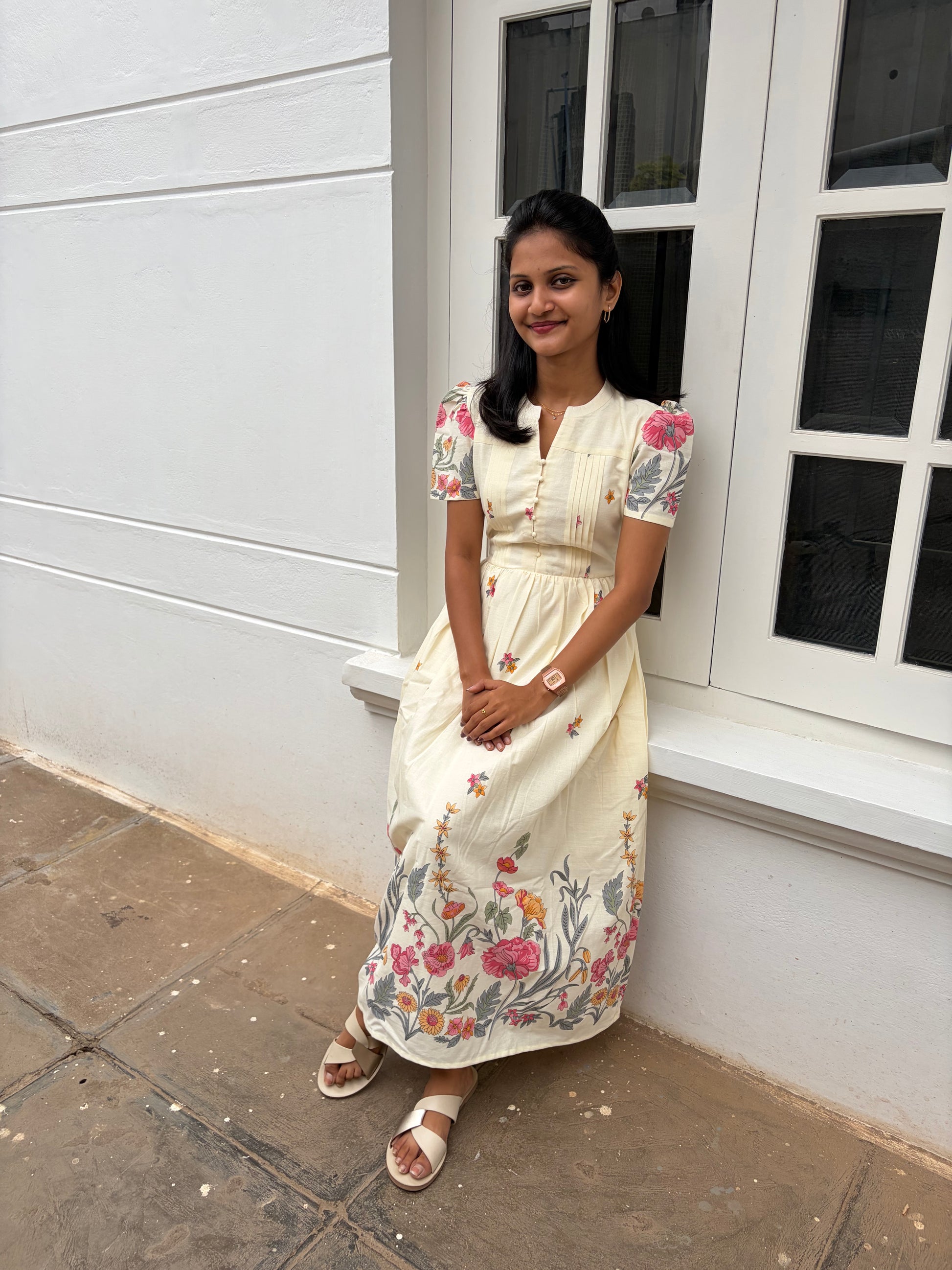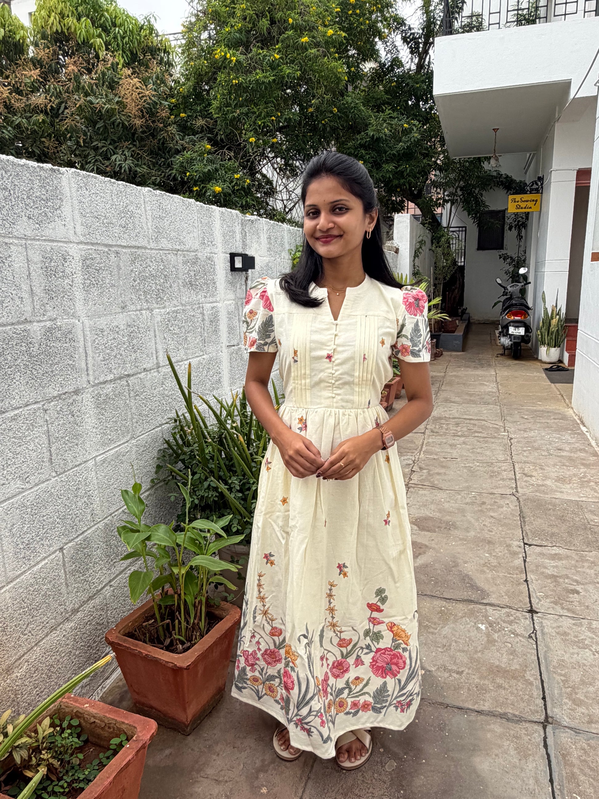 Crafted in flex cotton,this dreamy-white and floral maxi features delicate pleats along the yoke for a flattering fall.With a comfortable 48” length and convenient pockets,it’s perfect for effortless everyday elegance.