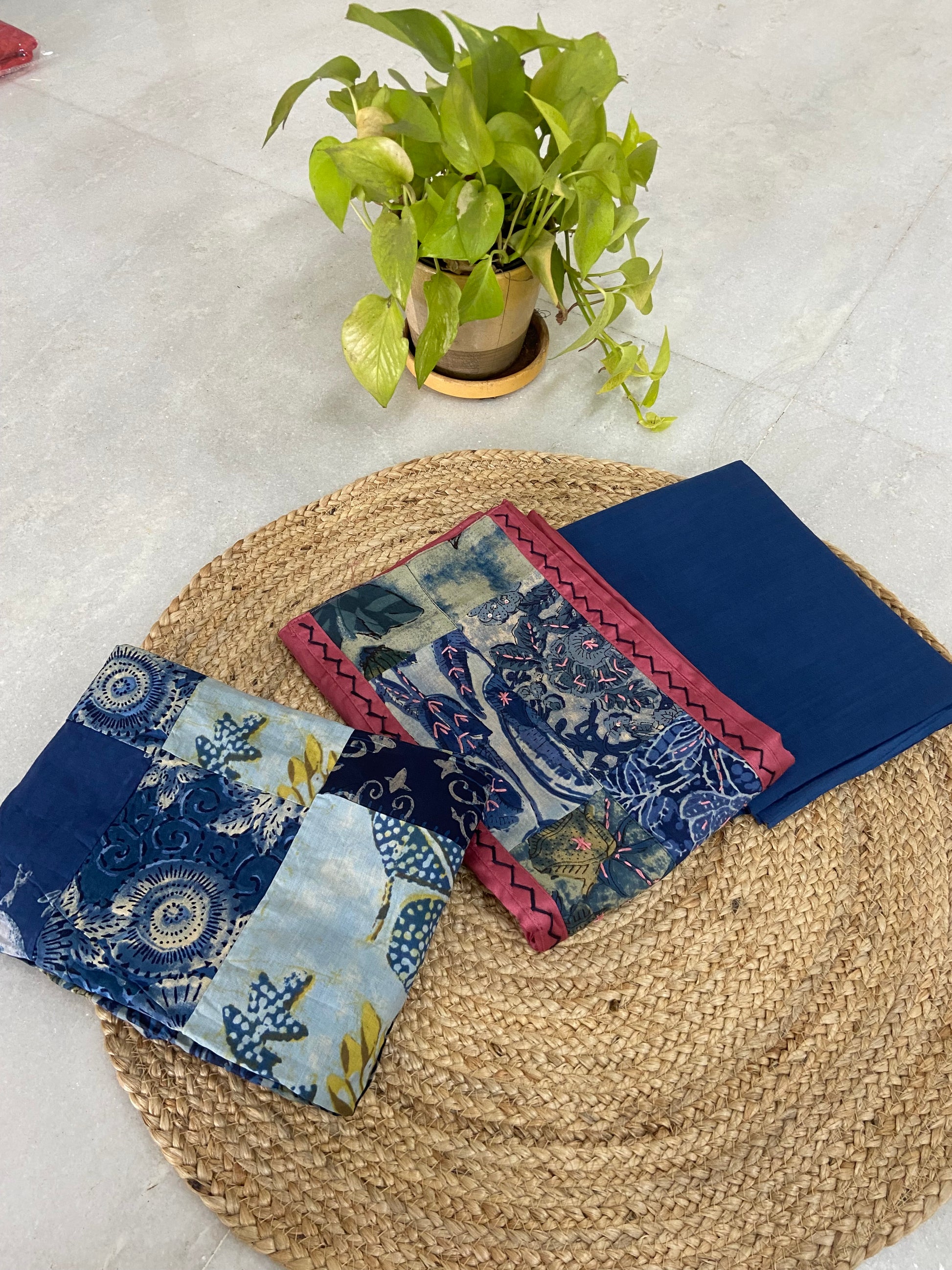 Everyday elegance -Cotton Salwar Suit Set highlighted with stylish patch work for a chic and comfortable look.