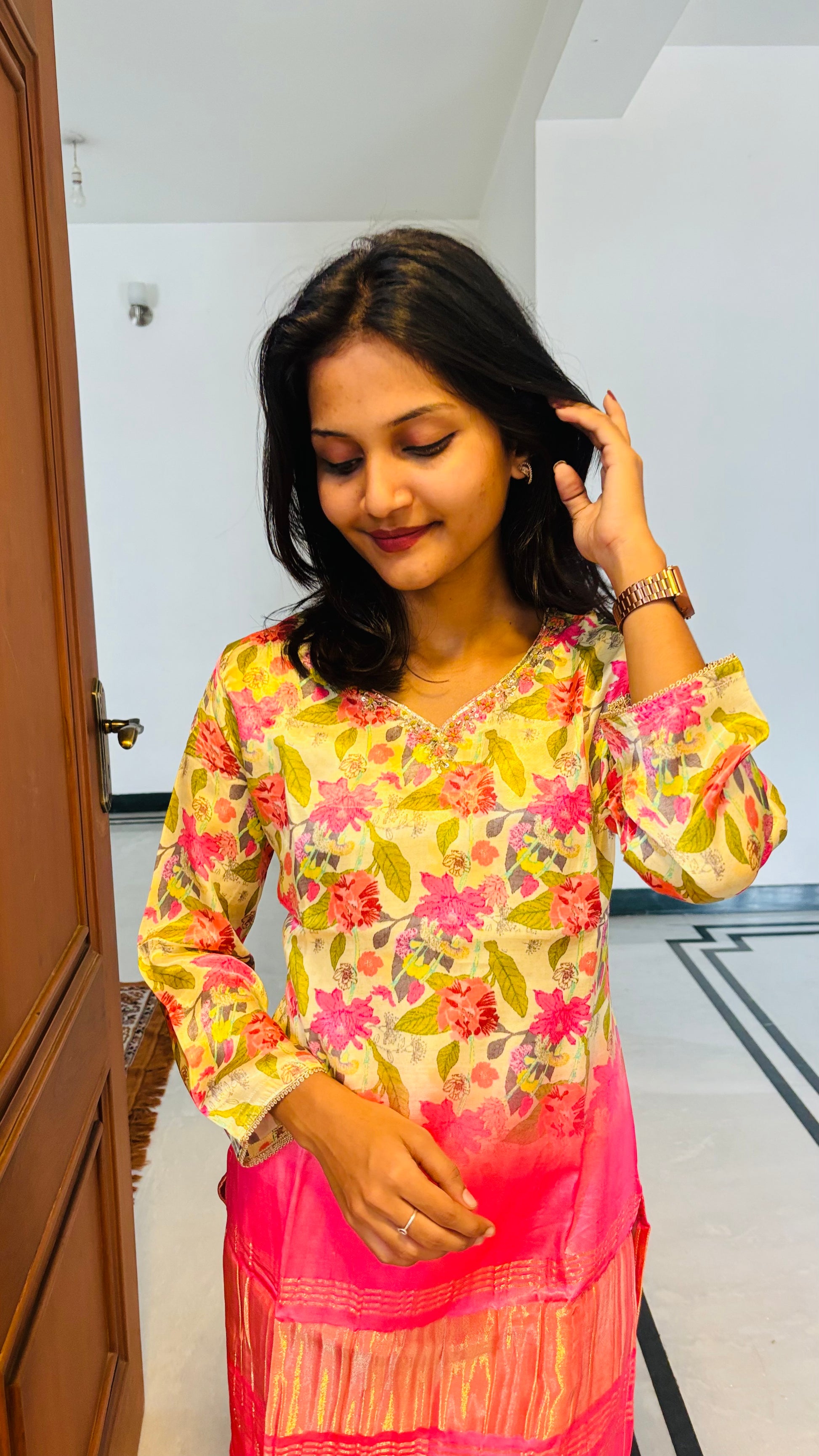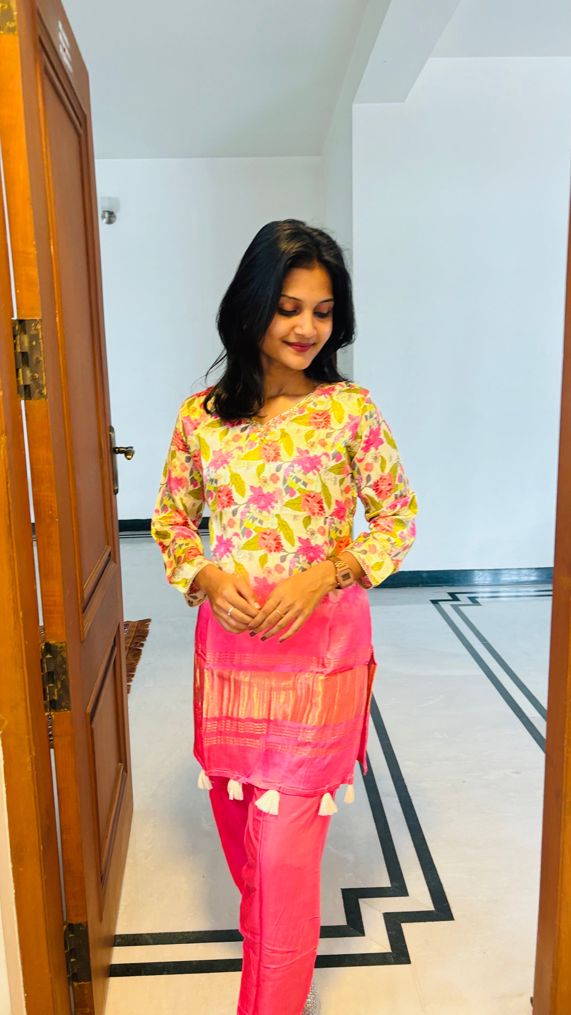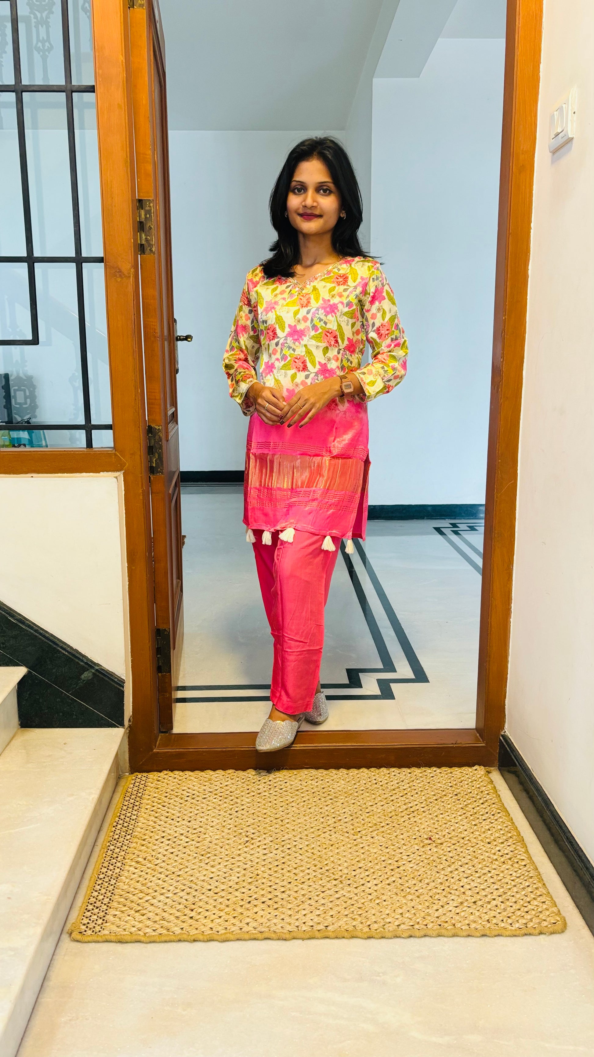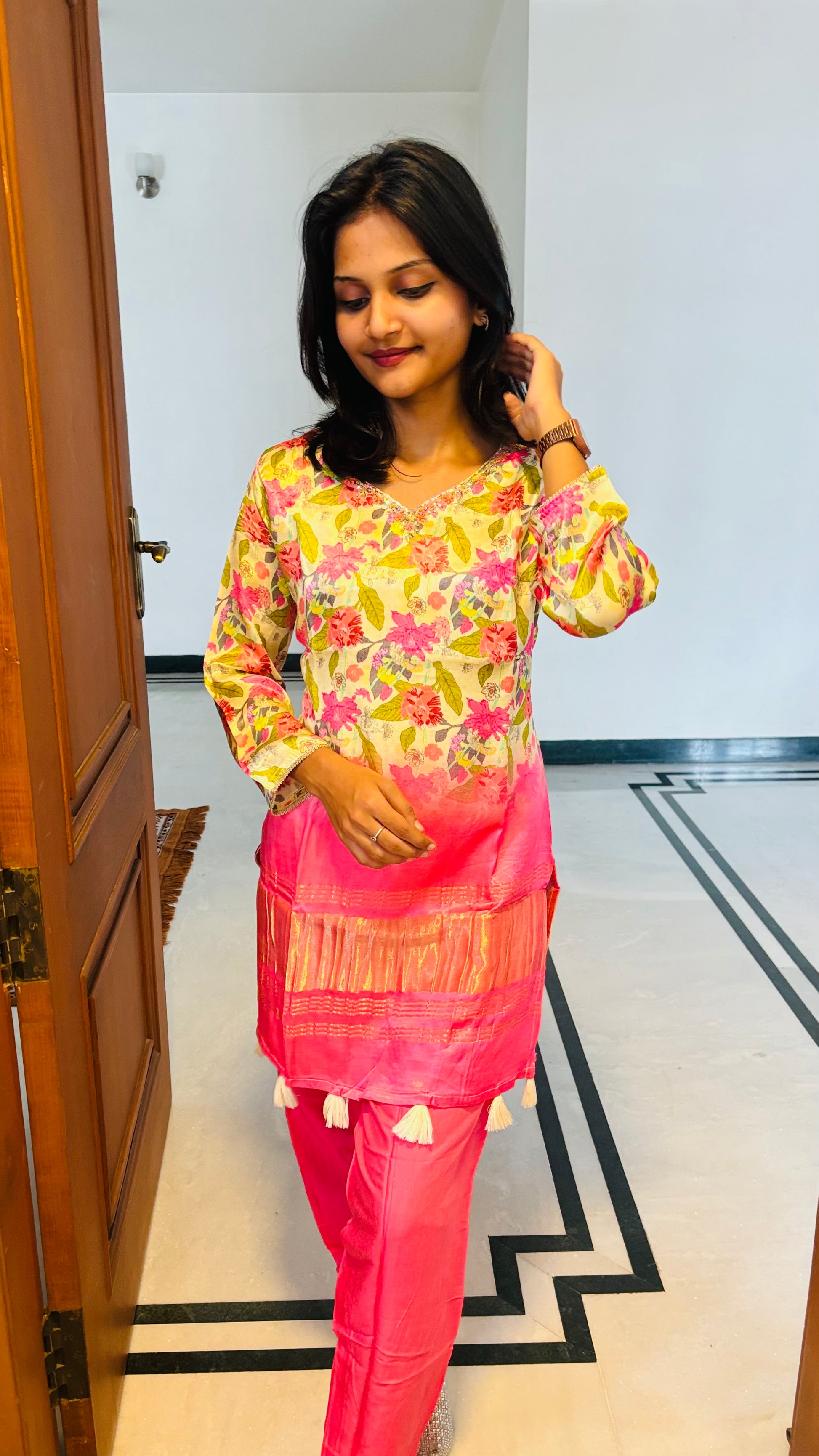 Soft and sophisticated-Baby pink Satin Gaji silk co-ord set with lining ,a blend of luxury and celebration.